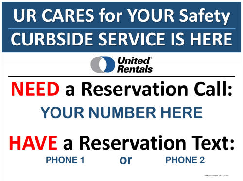 UNITED RENTALS Curbside Service All signs are made of 3.4mil full color printed vinyl, laminated with 3.4mil UV low luster clear protective laminate, adhered on 3mm (3/16") MaxMetal aluminum / polyethylene core substrate.